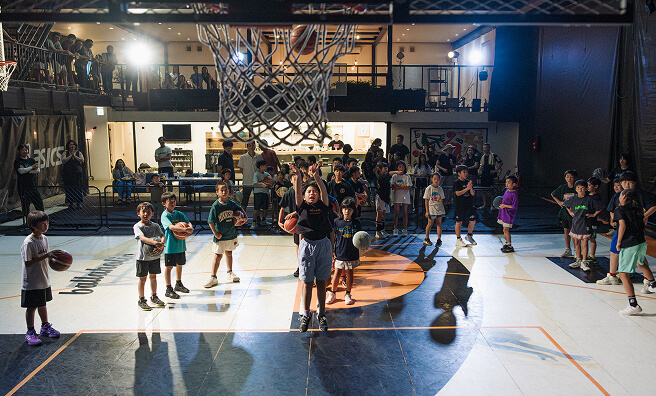 3つのゴールを備え、いつでも予約なく利用可能です。高さ可変のゴールもあるので、オトナもコドモも、バスケ好きが集まって楽しくプレーしましょう!